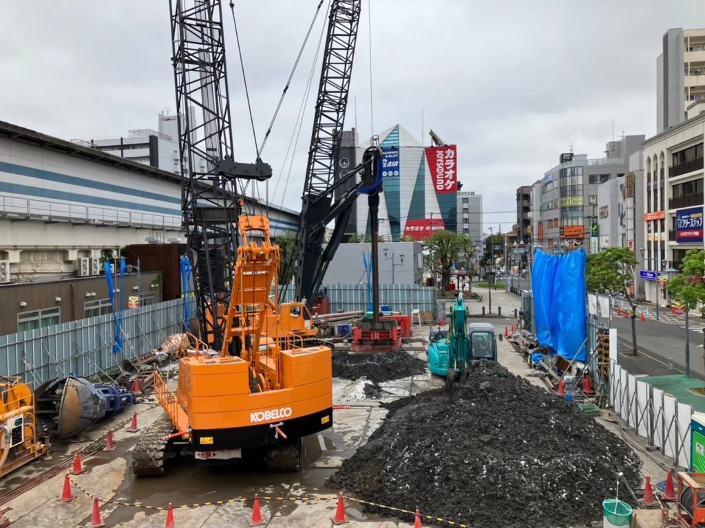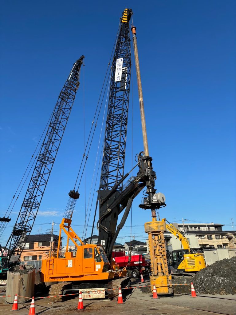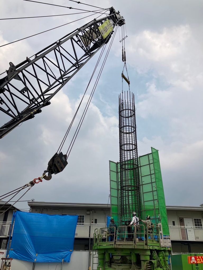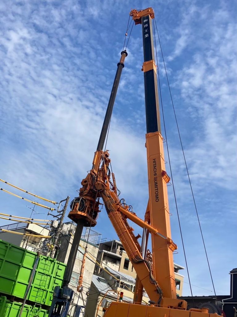 アースドリル工法とは、施工能力が高く建築分野で最も採用される場所打ち杭工法です。